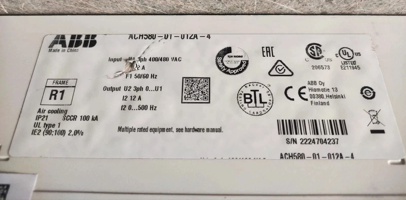 | Model Number | ACS800 104 0580 7 |