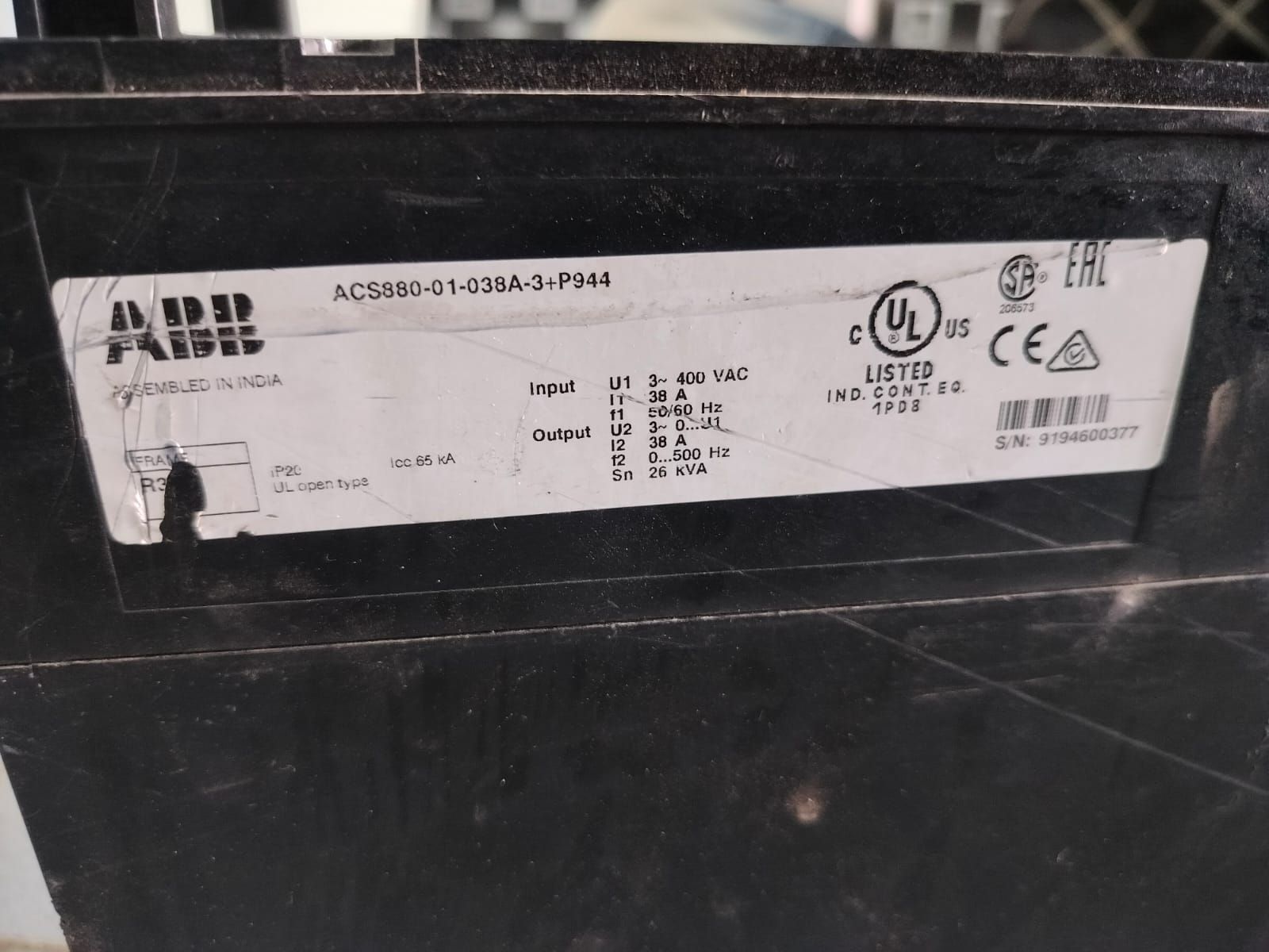 | Model Number | ABB ACS880-01-038A-3+P944 DRIVE TASTED OK |