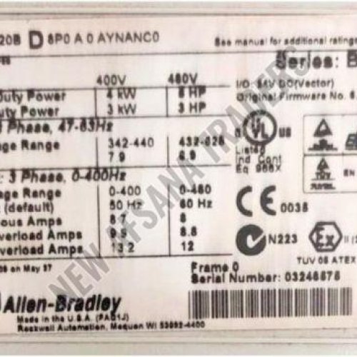 Allen Bradley Powerflex 700 20BD8P0A0AYNANC0 Series B 8A 460V 5HP AC Drive
