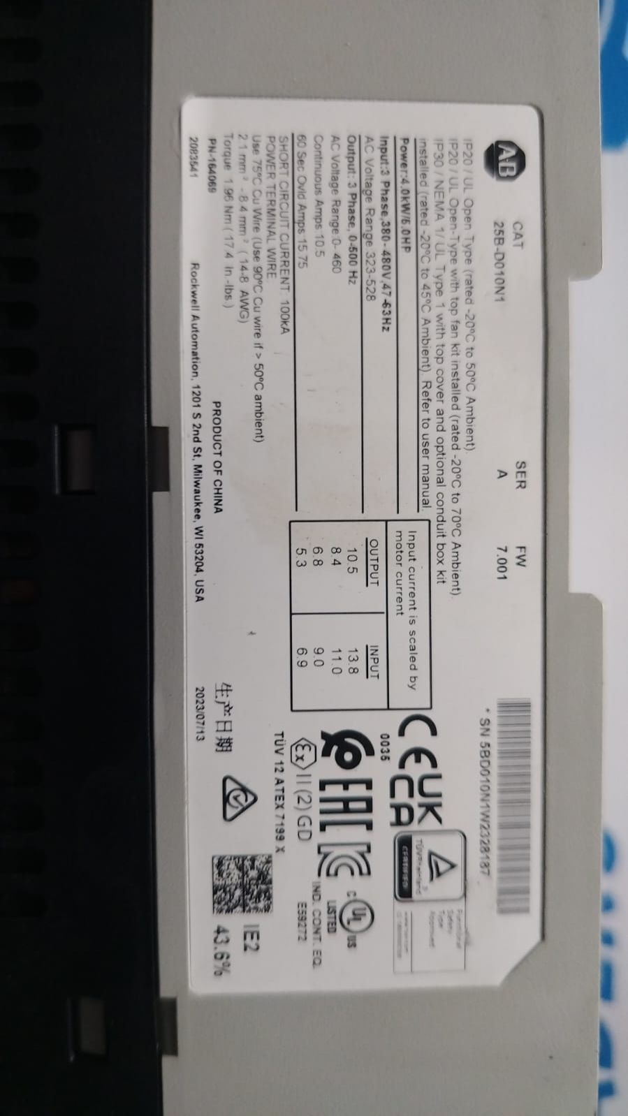 Allen Bradley VFD 25B-D010N104 Powerflex 525 5 HP, AC 3PHASE Tested Okay